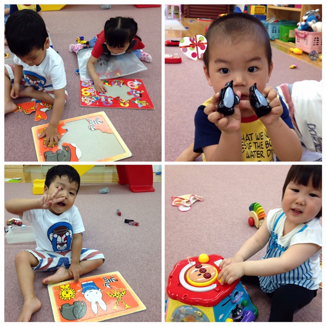 プレイルームではパズルをして遊んでましたが、一生懸命組み立てて出来上がった瞬間にすぐ崩すというなんとも不思議な光景🙃
