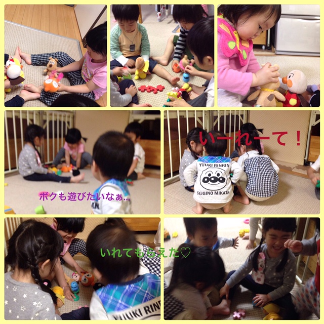 そんな年上のお兄さん、お姉さんたちを見て1人遊びをしていた2歳前のごうちゃんが「いーれーてー」と‼️