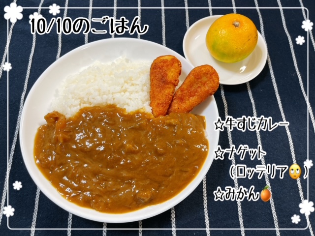 2日分のごはん🍚🍛 2021.10.132021.10.10 先日、10/8のごはんのところに10/9のごはんの写真がありましたが、コラージュの日付ミスです😭 こちらが正真正銘10/9と10/10のごはんたちです😊笑