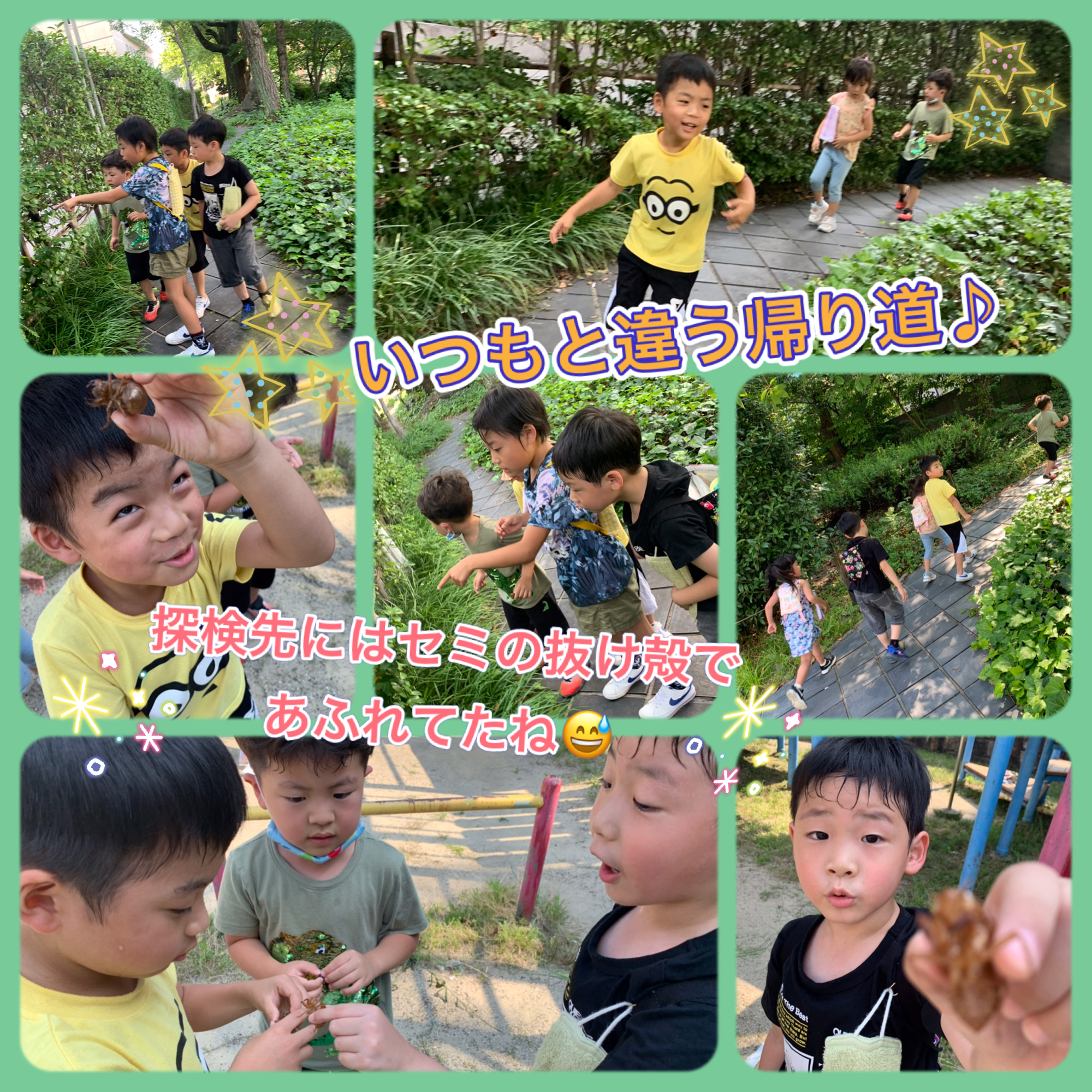 帰り道も探検しながらたくさんのセミの抜け殻を