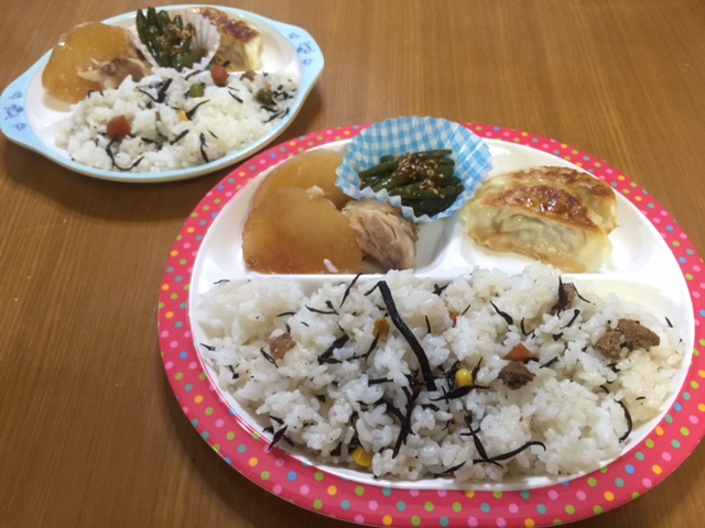 二人とも初めてママと離れたけれど、ご機嫌よく離乳食を食べれてスタッフもびっくり!