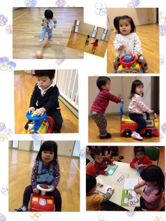 手押し車やボールを貸してもらい、児童館のホールで身体をいっぱい動かして遊んできました!ヾ(*´エ`*)ノ