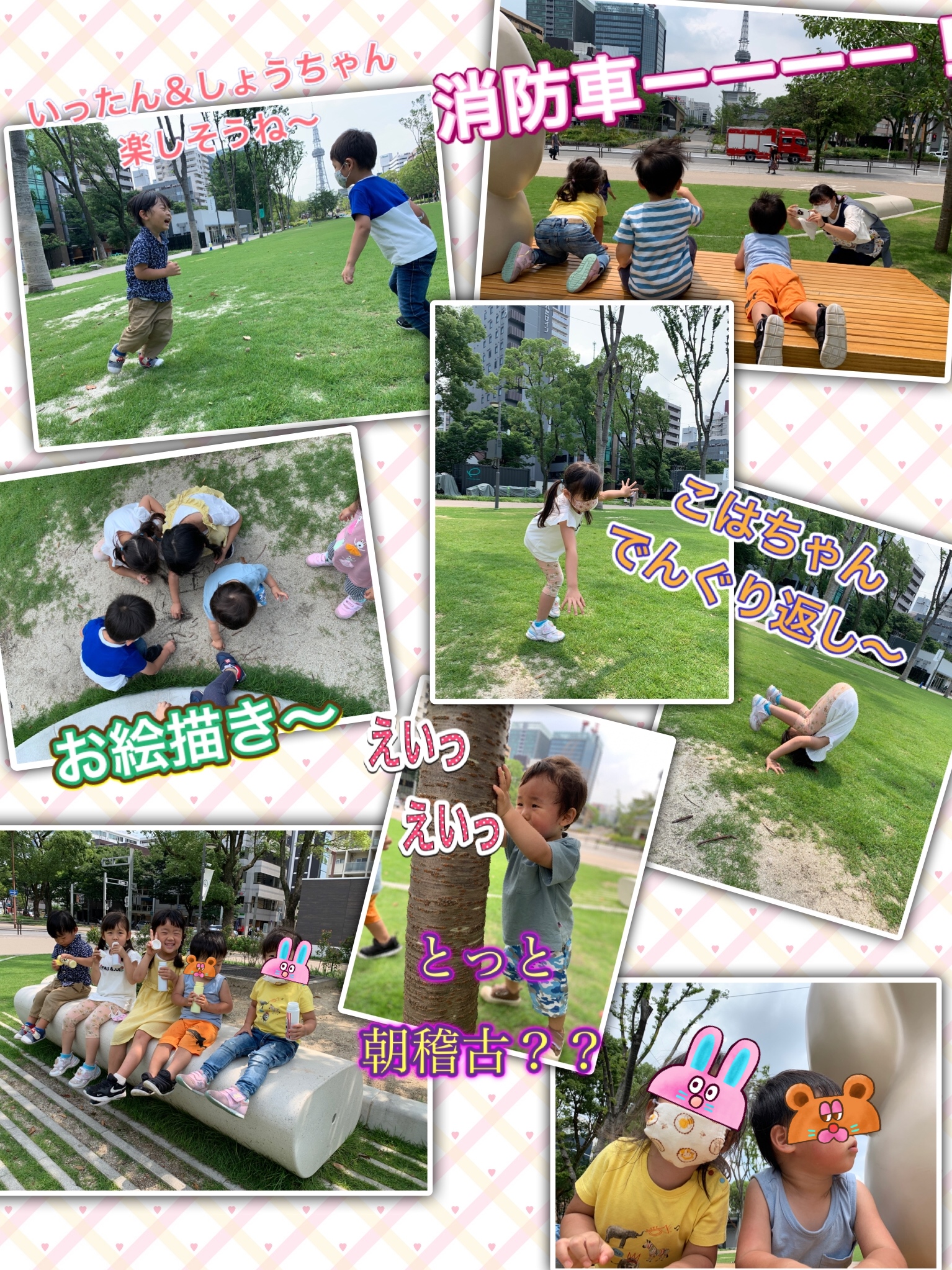 たくさん遭遇!! 2021.10.132021.07.14 今朝は読書タイムからスタート‼️ 2歳さんが中心となって「いないいないばー」をしたり、 働く車をいっぱいお勉強! そして、みんなが揃った所で芝生広場へお散歩に。 遊んでいる時に 救急車救急車🚑消防車🚒が通って行き、 みんな大興奮!!! さらに、午後のお散歩で今度はパトカー🚓を発見!!! コンプリートな1日だったね〜😁