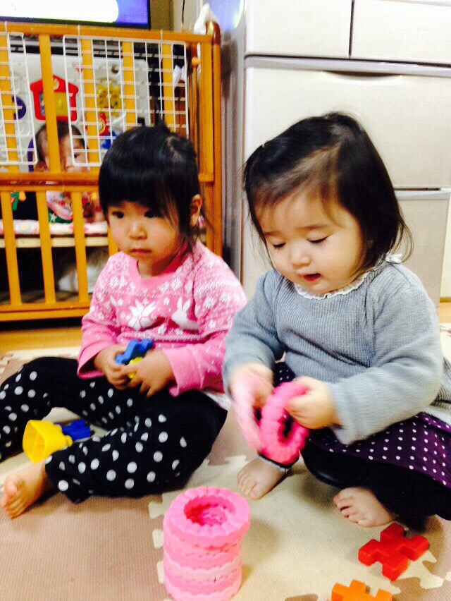 新しいおもちゃが増えてから、テーブルで遊ぶ子、マットで車などを走らせて遊ぶ子と別れるようになりました(´-`).。oO()