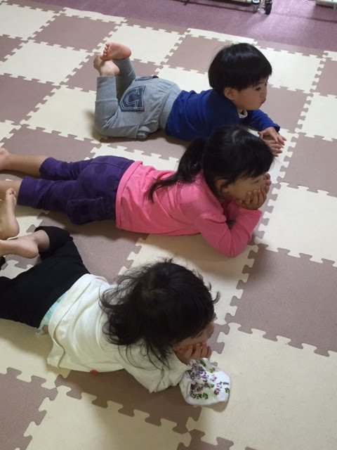 普段ならテレビの前にしっかり陣取って座っているのに、教えられたわけでもなく離れて見てる…