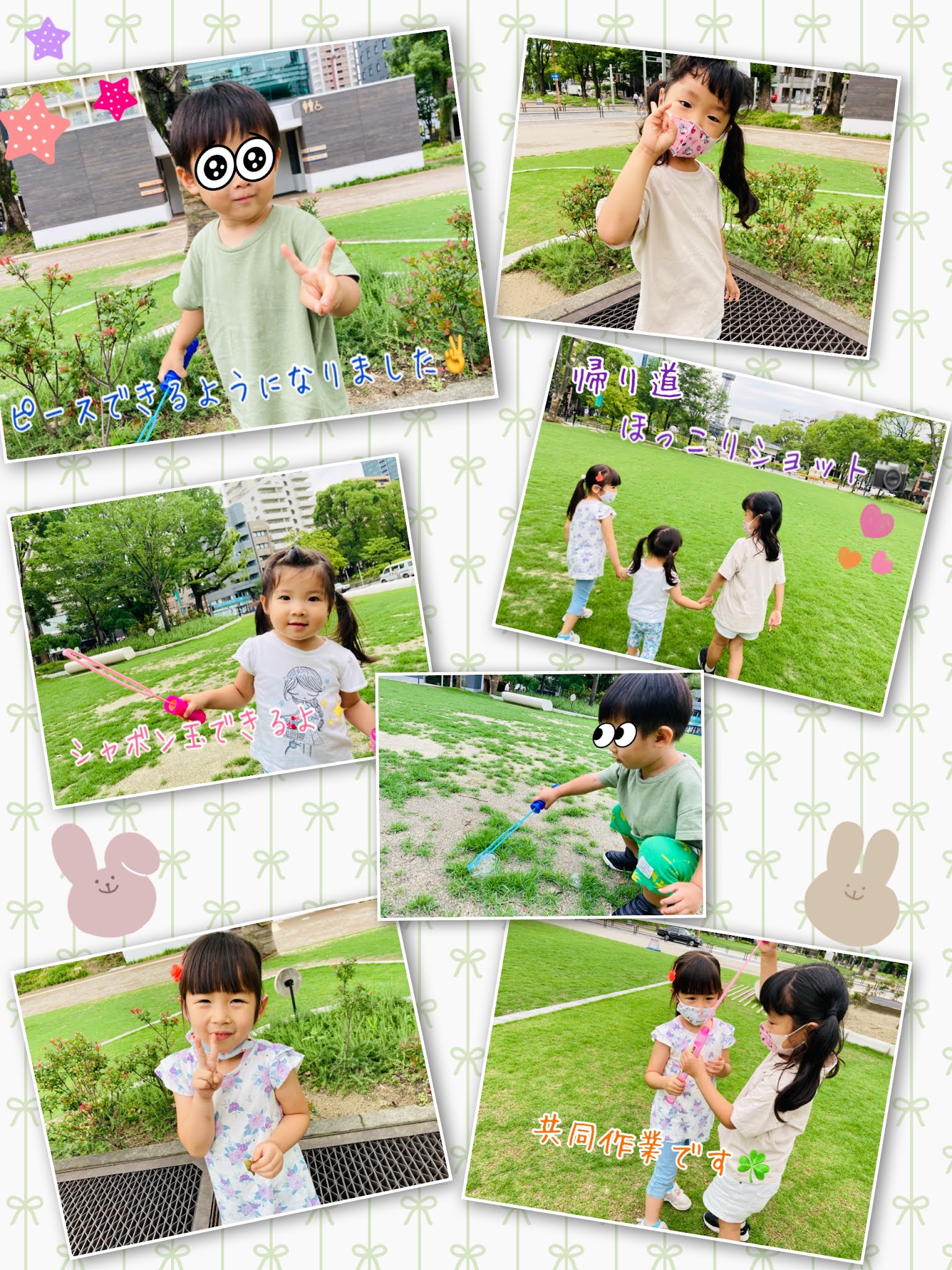 今日の午前中のお散歩は、芝生広場でシャボン玉をやりに行きました☘️✨