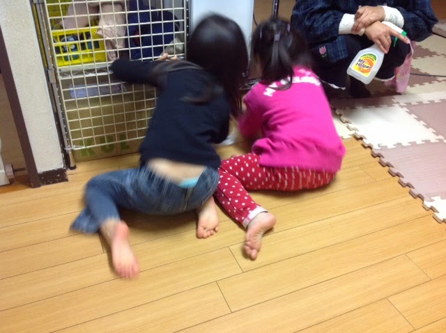 はじめは先生の指示でお手伝いしていましたが、だんだんノッてきたのか、背中丸出しになっちゃうくらい(半◯ツ状態というww)自ら進んでお掃除٩( ‘ω’ )ﻭ