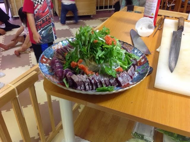 パパ達が上手?にさばいた切り口も大将が上手に盛り付けをしてくれたんです٩(๑• ³ •๑)۶