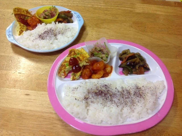今日のごはん、ゆかりを子どもにかけてあげたのですが思ったよりもいっぱい出てしまいました(゚Д゚)