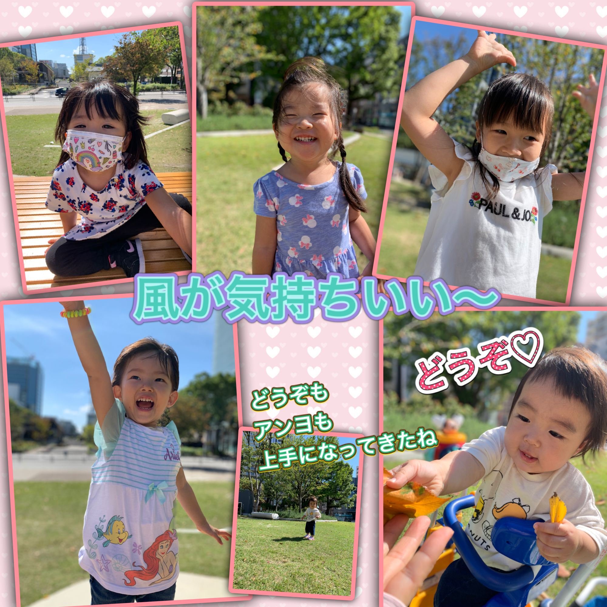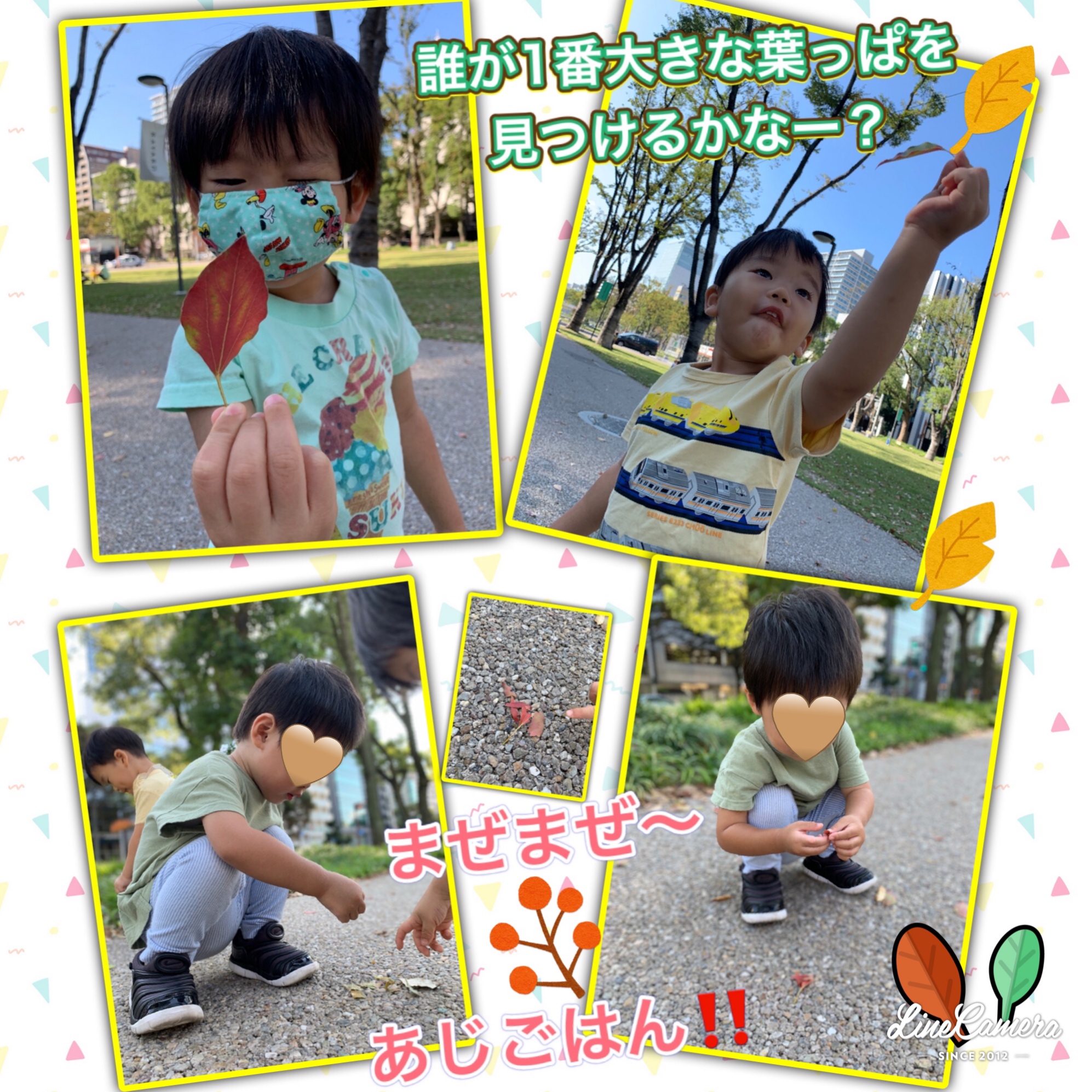 今日はみんなも黄色や赤の葉っぱを嬉しそうに拾って遊んでました😊