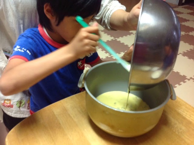まぁ子どもと作る時には身近でやりやすいですし、炊飯器釜で材料簡単に混ぜれて洗い物でないしね←