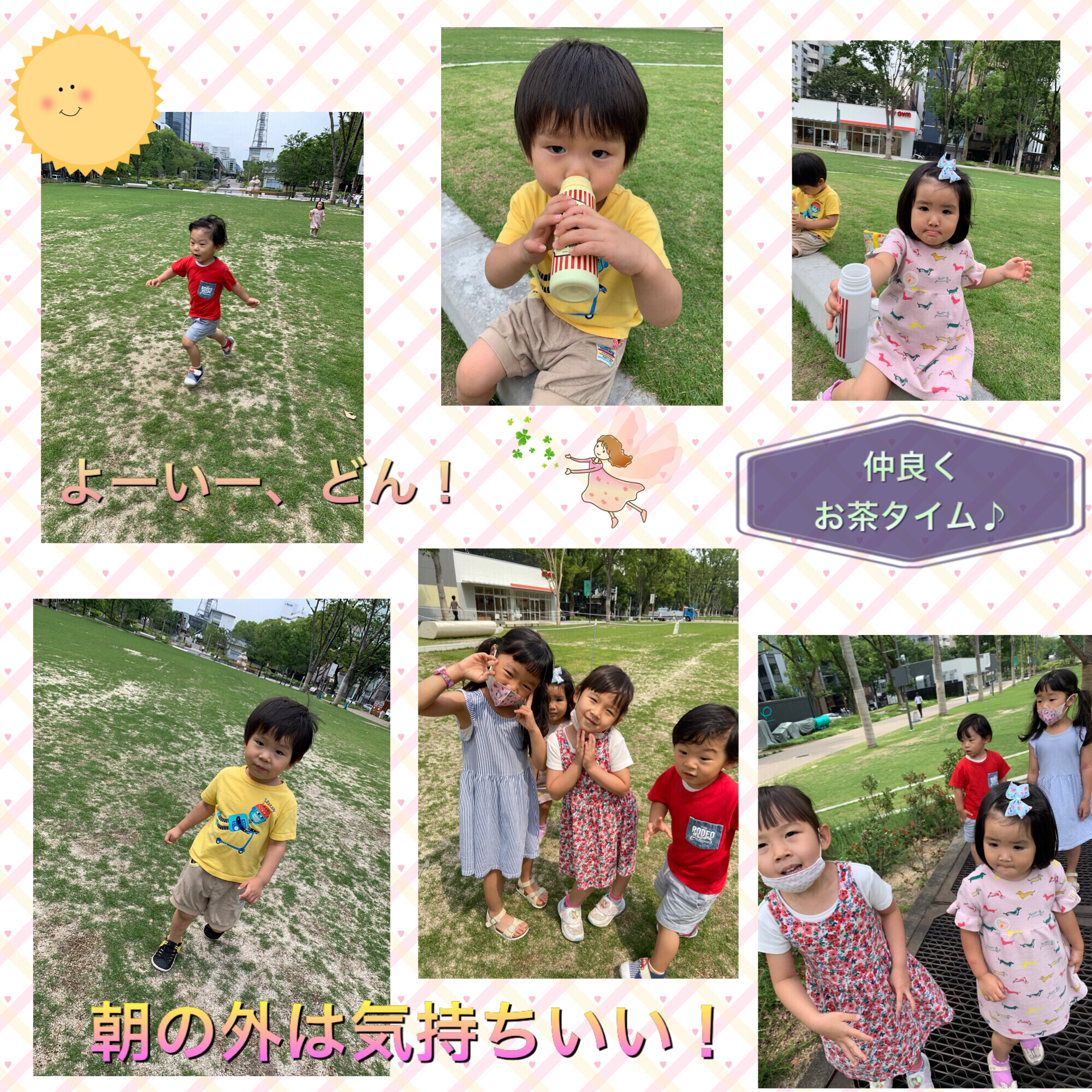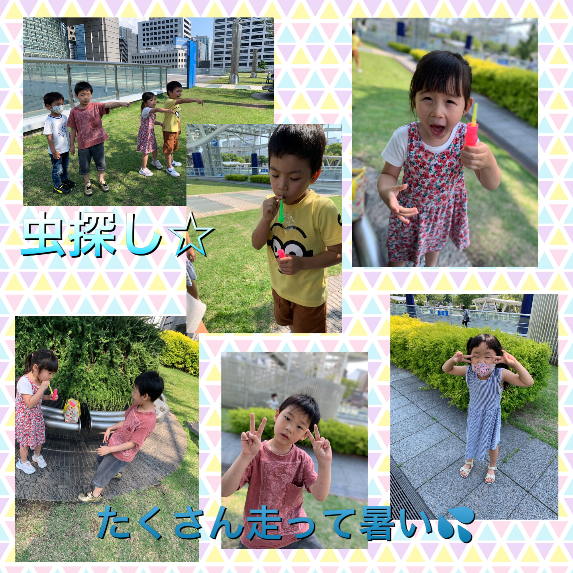 だいぶ気温も上がり暑くなってきましたが、子ども達は「お散歩に行きたい!」と元気いっぱい✨✨虫探しをしたり、しゃぼん玉をしたり仲良く遊びました❤️