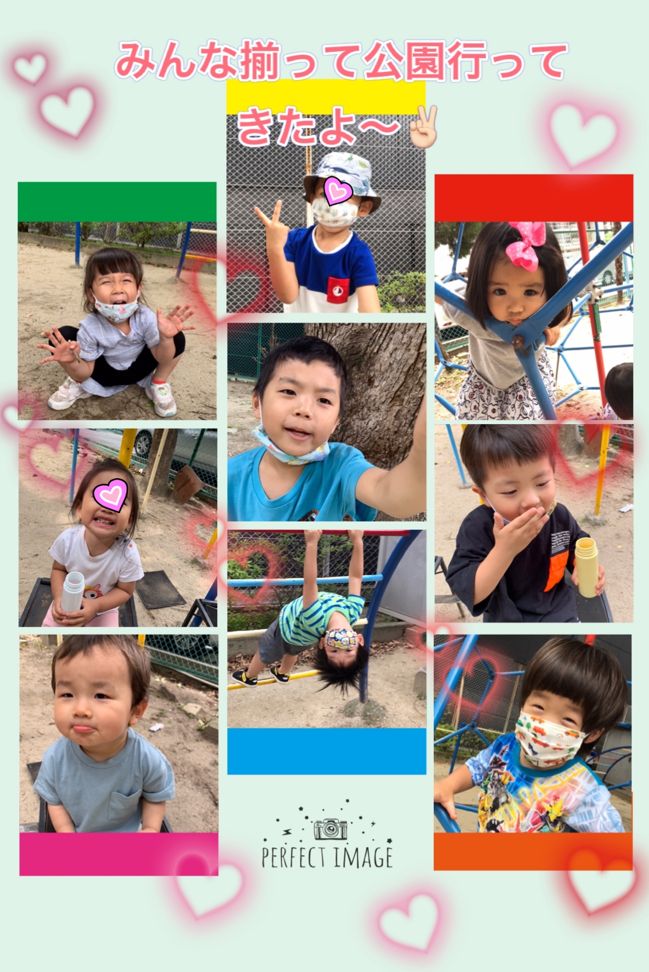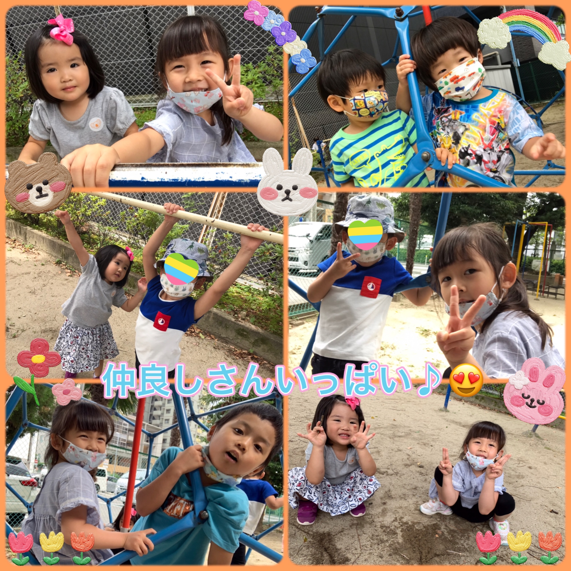 Untitled Post 2021.10.132021.06.22 雨も降らず太陽のかんかんの暑さもなく みんなでとっても過ごしやすいお天気で 午前中も夕方もいつもよりちょっぴり長めの おさんぽへ行っちゃいました〜♪😌 最近みんなのお散歩中耳にする 「もう暑い〜💦😔」など嘆く声も今日は全くなし♪ みんなご機嫌さんが多かったからかな〜? 今日はなんだかみんな仲良しさんショットがたくさん✨📸 蒸し暑さは油断できないので水筒は今日も しっかり人数分持って👍🏻 陽気にみんなで「かんぱーい✨」と お茶タイムもみんな楽しいそうでした🥳