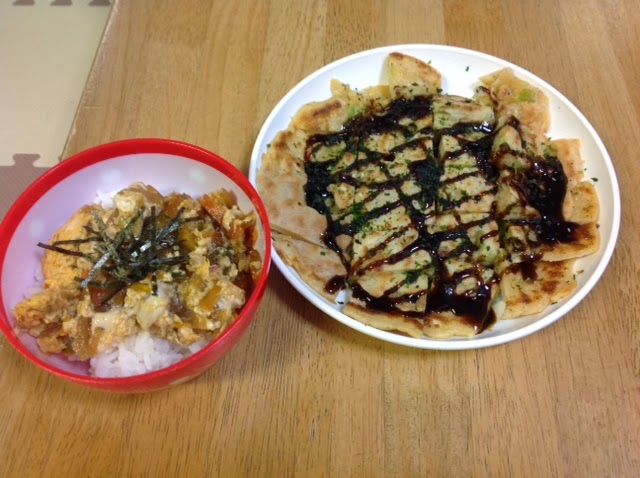 1月12日のごはんですよー(・ω・)ノ 2021.10.132014.01.12 今日は日曜日なのでお友達の出足がわかりません( ;´Д`) そんな時のスピードメニューです♪ ☆お好み焼き(切りイカ 豚肉 桜えび たまご 青のり) ☆玉子丼(人参 玉ねぎ かぼちゃ たまご きざみのり) お好みの刻み生姜は不評なので入れません( ^ω^ ) みんな辛いっていうので今日は無しにしてみましたっ☆