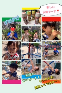 ちびちゃん達は芝生広場で暑さに負けず元気いっぱい❣️
